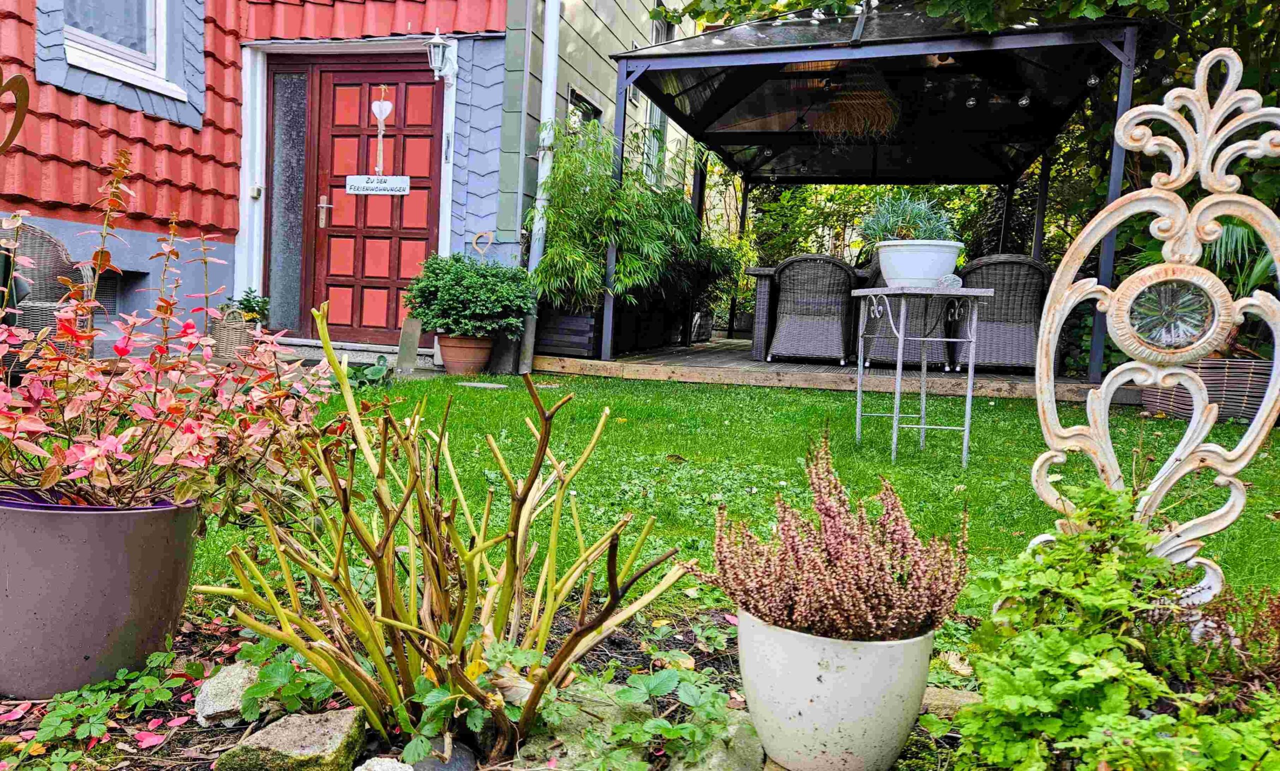 mehrere brandneue Sitz- und Grillmöglichkeiten im Garten unter Pavillons lassen die gesundheitsfördernde Harzer Frischluft genießen